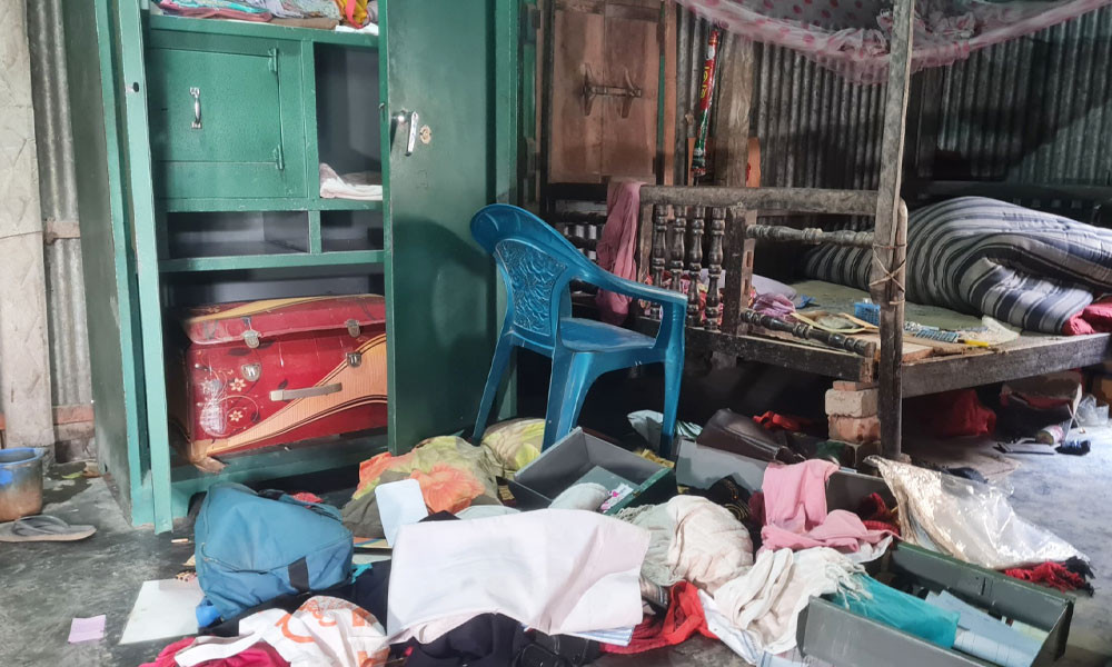 পরিবারের অভিযোগ, রাতের কোনো এক সময় টিন কেটে দরজা খুলে ঘরের ভেতরে প্রবেশ করে ওই শ্রমিকরা। এরপর মোতাহার সিকদার ও রেজিয়া বেগমকে শ্বাসরোধে হত্যা করে ঘরে থাকা নগদ টাকা ও স্বর্ণালংকার লুট করে পালিয়ে যায় তারা।