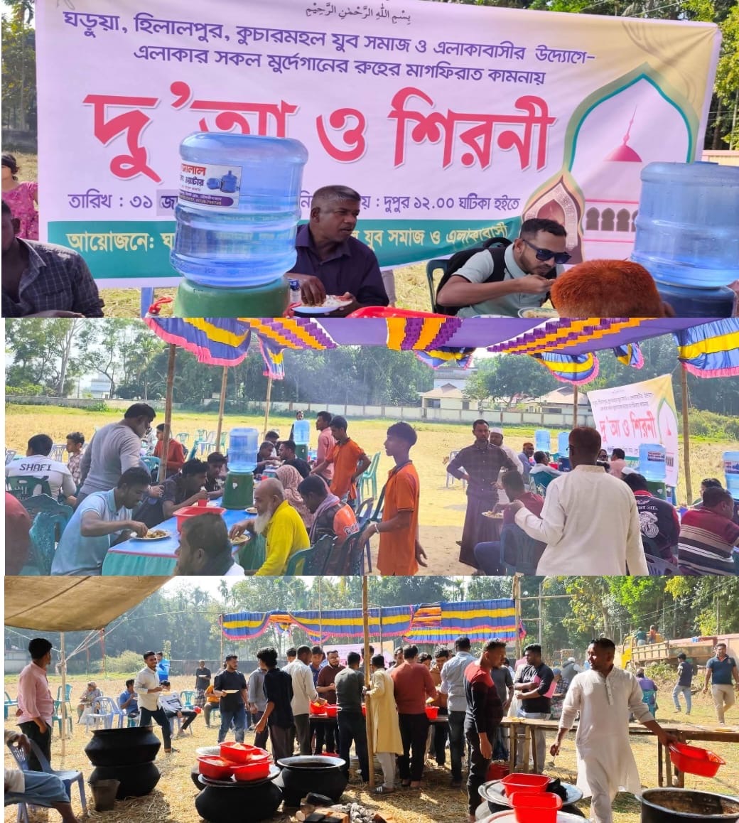 মৌলভীবাজার জেলার সদর উপজেলার হিলালপুর, ঘরুয়া ও কুচার মহল—এই তিন গ্রামের যৌথ উদ্যোগে এলাকার মৃত ব্যক্তিদের রুহের মাগফেরাত কামনায় আজ ৩১ জানুয়ারি ২০২৬ আয়োজিত হলো রাঘাটি শিরনী। একসময় গ্রামবাংলার ঐতিহ্যবাহী এই আয়োজন ছিল ধর্মীয় ও সামাজিক জীবনের অবিচ্ছেদ্য অংশ। কিন্তু সময়ের ব্যবধানে প্রায় দুই যুগ ধরে রাঘাটি শিরনীর সেই প্রথা ধীরে ধীরে হারিয়ে যেতে বসেছিল। এ বছর এলাকার যুবসমাজের উদ্যোগে এবং তিন গ্রামের প্রবাসীদের সহযোগিতায় পুনরায় শুরু হলো এই হারিয়ে যাওয়া আয়োজন। প্রায় পাঁচ হাজার মানুষ অংশগ্রহণ করেন