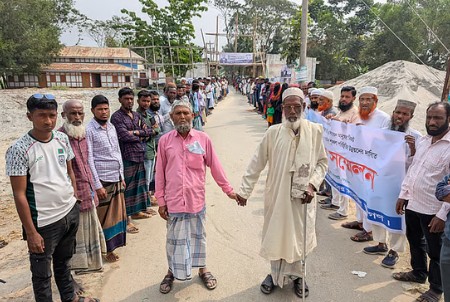 পটুয়াখালীর বাউফল উপজেলার নদীবেষ্টিত চন্দ্রদ্বীপ ইউনিয়নে এক বিএনপি নেতা ও তাঁর অনুসারীদের বিরুদ্ধে চাঁদাবাজি ও নির্যাতনের অভিযোগ তুলে মানববন্ধন করেছেন স্থানীয় বাসিন্দারা। মঙ্গলবার (২৪ ফেব্রুয়ারি) চন্দ্রদ্বীপ খেয়াঘাট এলাকায় সংবাদ সম্মেলনের পর আয়োজিত মানববন্ধনে পাঁচ শতাধিক নারী-পুরুষ অংশ নেন।