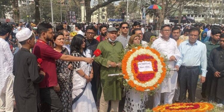 সকল প্রতিকূলতা উপেক্ষা করে আন্তর্জাতিক মাতৃভাষা দিবস উপলক্ষে ঢাকা বিশ্ববিদ্যালয়ের শিক্ষক সমিতি আজ কেন্দ্রীয় শহীদ মিনারে ভাষা শহিদদের প্রতি শ্রদ্ধা জানান। দুপুর ১২:৩০ মিনিটে সাধারণ সম্পাদক অধ্যাপক জিনাত হুদা-এর নেতৃত্বে তারা পুষ্পস্তবক অর্পণ করেন।